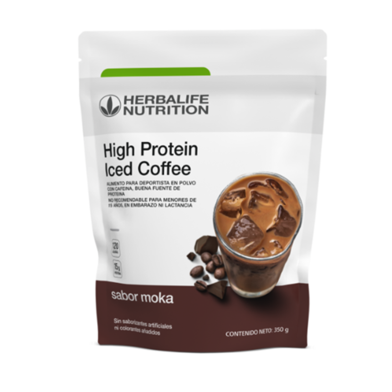 High Protein Iced Coffee Herbalife es una deliciosa bebida con sabor a café espresso, que combina proteína de suero de alta calidad con cafeína natural, perfecta para disfrutar en cualquier momento del día.